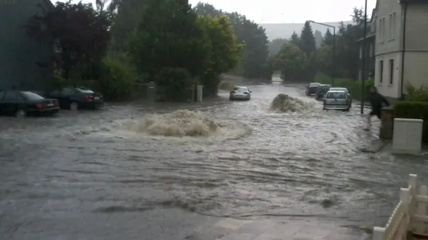 Flooding can also occur in areas that are not close to water bodies. Heavy rainfall exceeds the capacity of drainage systems and natural infiltration, causing water to run off above ground. Buildings on slopes or in depressions are particularly at risk. Water can also enter the building from the roof if the guttering is overloaded.