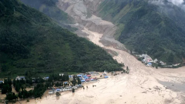 Heavy rainfall in steep areas can cause debris flows by loosening debris from the ground and transporting it downhill. The debris flow ends at the foot of the slope where it accumulates. Buildings and infrastructure in the path of a debris flow are particularly vulnerable due to the increased destructive force compared to a river flood.